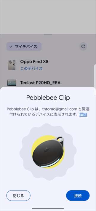 Androidでは「デバイスを探すアプリのアプリでPebblebeeの蜂のマークを2回押すと接続が出来ます。